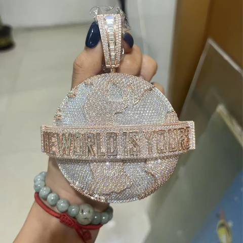 Pendentif Hip Hop Moissanite Iced Out Bijoux de Rappeur Charme en Argent Sterling Diamant Personnalisé Bling Plaqué Or 18K Pendentif Diamant